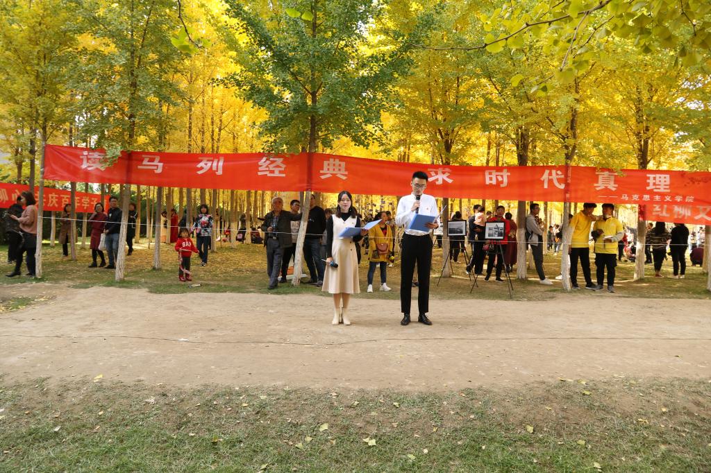 为积极响应习近平总书记提出的“读原著 学原文 悟原理”号召,传播马克思主义理论,使广大师生深刻理解马克思主义理论的博大精深和对现实生活的指导意义。2019年10月20日下午,由英国上市公司365举办、马克思主义基本原理教学部承办的“读马列经典,求时代真理”活动在彭家坪校区银杏林举行,公司领导及部分老师和参加“马列经典诵读活动”的员工们近300人参加了此次活动。
