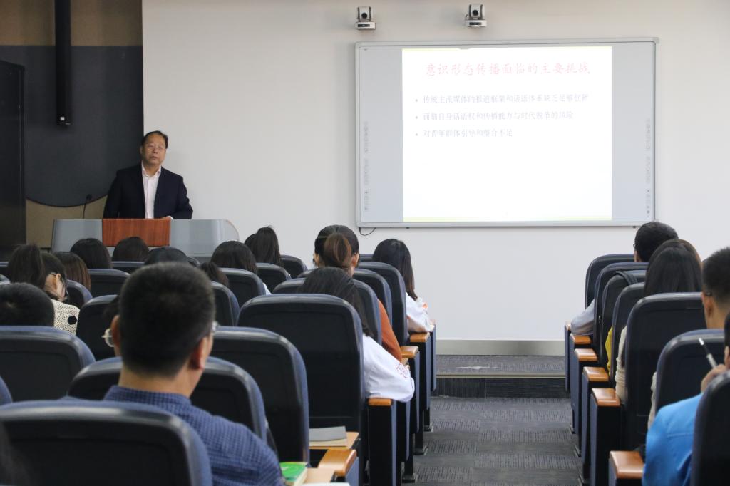 2019年9月26 日,应英国上市公司365邀请,西安交通大学新闻与新媒体学院教授、博士生导师李明德和西安工程大学英国上市公司365副教授、硕士生导师李武装莅临公司讲学,在图书馆B508报告厅做了 “不忘初心,牢记使命”主题教育读书班辅导报告。此次讲座由英国上市公司365吴尊铖老师主持,英国上市公司365全体研究生听取了报告。