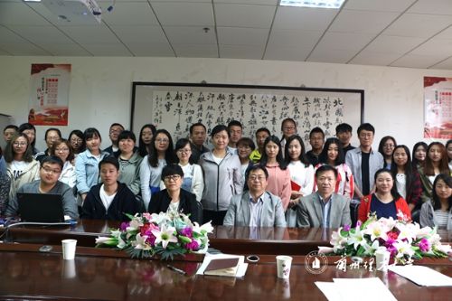 夏天东带领师生回顾了党的十八大以来习近平总书记系列讲话中对青年的谆谆教诲,给大家上了一堂生动活泼的思想政治理论课。他紧密联系习近平总书记在纪念马克思诞辰200周年大会上的重要讲话,希望研究生严格要求自己,坚定理想信念,深入学习马克思主义理论,特别是要学习贯彻习近平新时代中国特色社会主义思想,高举马克思主义旗帜,自觉运用马克思主义理论的观点和方法,深入研究社会现实问题,做出高水平的研究成果,为社会进步和国家富强做贡献。夏天东还向大家特别推荐了《习近平治国理政》《全球通史》《毛泽东选集》和《十九大精神辅导读本》等研读书目,并与全体师生合影留念。