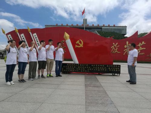 7月23日,马克思主义实践小组参观了六盘山红军长征纪念馆。实践小组师生徒步3公里爬上六盘山,亲身体验长征的艰险。攀爬途中,师生们诵读了红军长征途中毛泽东写于此的《清平乐.六盘山》一词,“天高云淡,望断南飞雁。不到长城非好汉,屈指行程二万。六盘山上高峰,红旗漫卷西风。今日长缨在手,何时缚住苍龙?”。在六盘山顶,巍然壮观的“六盘山红军长征纪念馆”呈现眼前时,实践小组的师生们心潮澎湃,党员师生在饶旭鹏副经理的带领下面对党旗重温入党誓词。