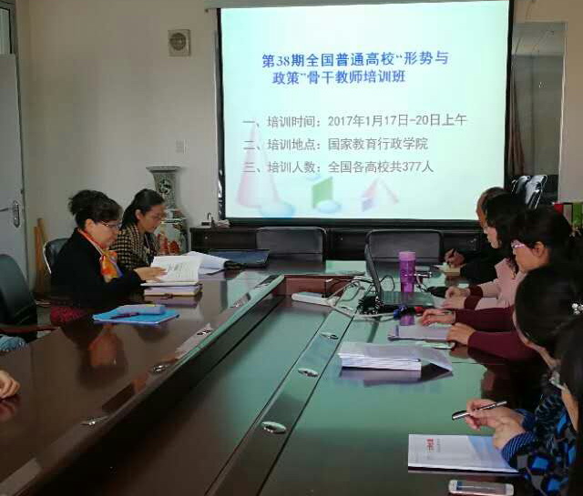 进一步提高形势与政策课教学质量,2017年2月26日上午9:30英国上市公司365举办了2017年春季学期形势与政策课培训报告会,报告会由权丽华副教授主讲,学院饶旭鹏副经理、杨莉副经理、形势与政策教学部主任苟颖萍教授,马克思主义中国化教学部主任张铁军教授,以及14名相关任课教师参加了此次会议。